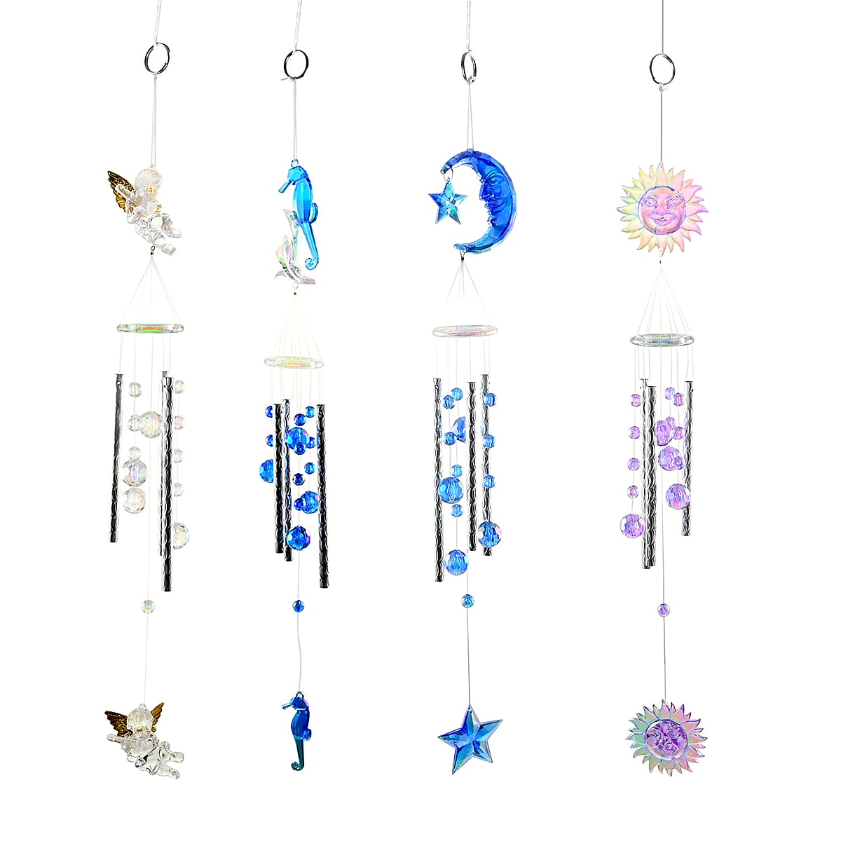 Closeout Set of 4 Beads Wind Chimes -Cherub, Moon & Star, Sun, Seahorse