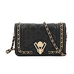 Closeout Valentino Orlandi Black Vegan Leather Quilted Crossbody Bag with Chain Accent