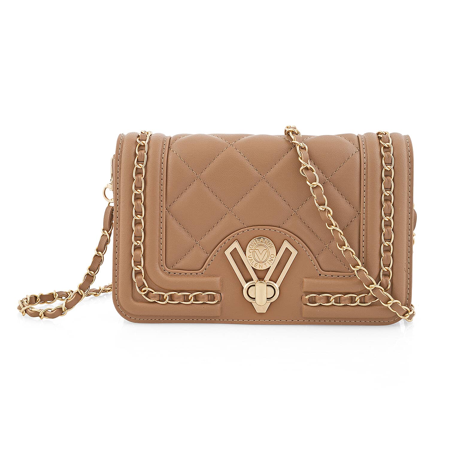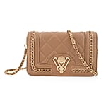 Closeout Valentino Orlandi Taupe Vegan Leather Quilted Crossbody Bag with Chain Accent