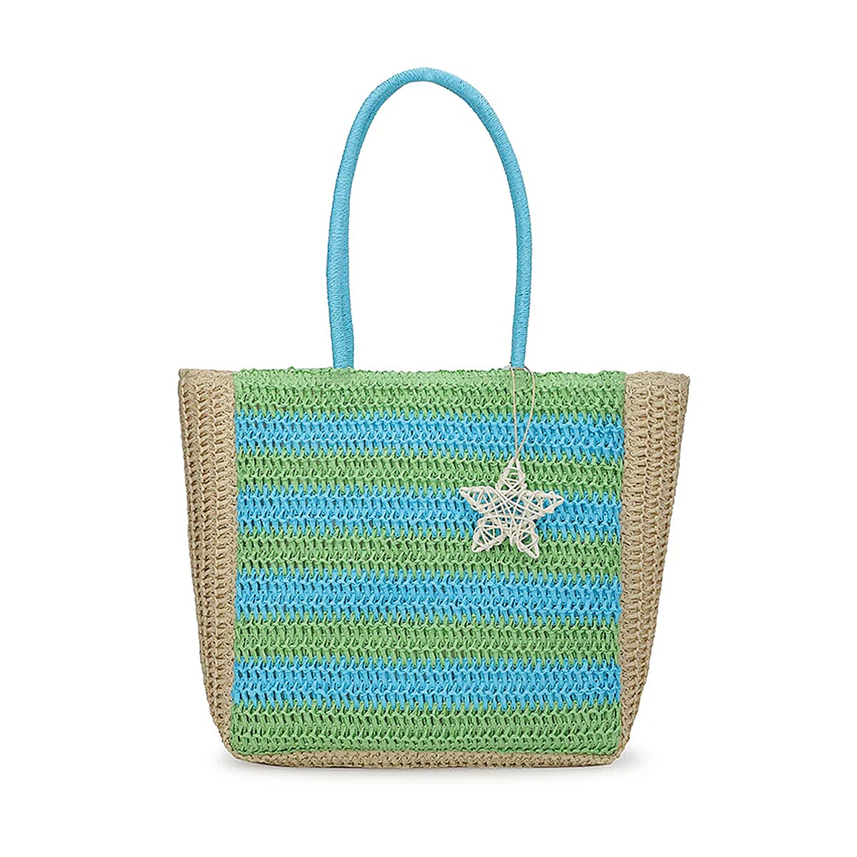 Closeout Vintage Havana Turquoise Stripes Crochet Design Tote Bag