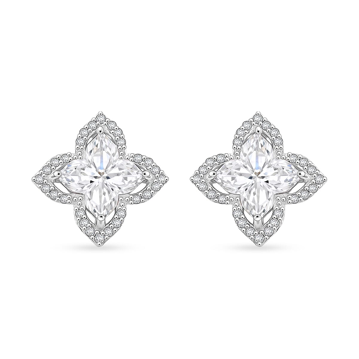 Clover Cut Moissanite 2.40 ctw Royal Bloom Earrings in Rhodium Over Sterling Silver