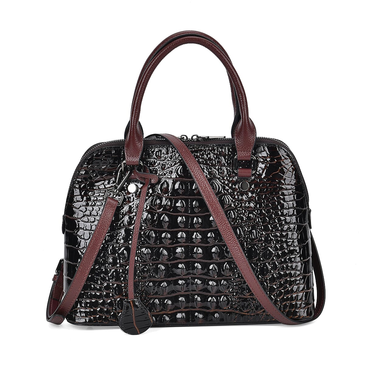 This crocodile embossed genuine leather crossbody bag features a distinctive texture and a luxurious feel, offering both a handle drop and an adjustable shoulder strap for versatile carrying options. Crafted for durability and style, this genuine leather bag combines functionality with elegance, perfect for enhancing any outfit.