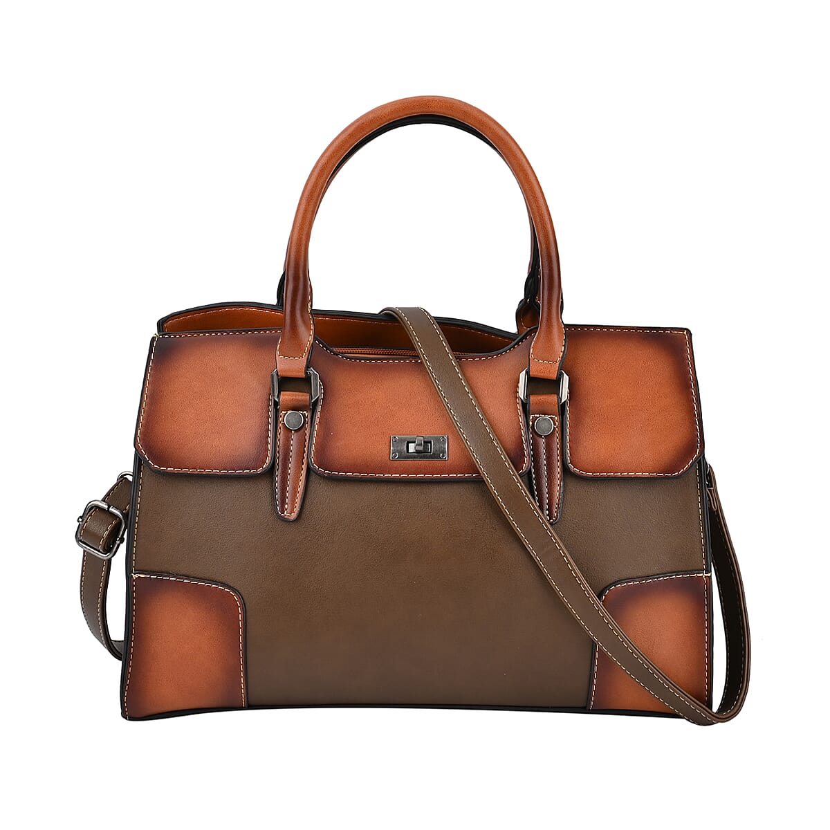 Coffee Faux Leather Crossbody Bag with Adjustable Strap