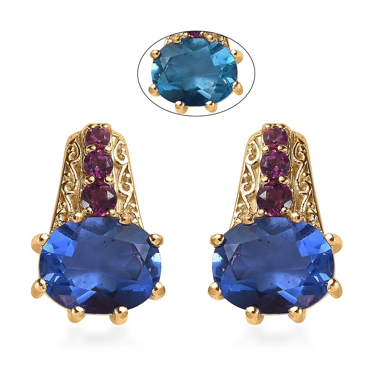Color Change Fluorite and Orissa Rhodolite Garnet Earrings in Vermeil Yellow Gold Over Sterling Silver 8.40 ctw