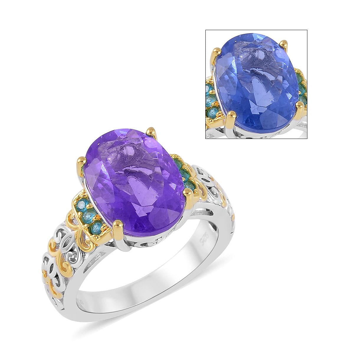 Color Change Fluorite (IR) and Malgache Neon Apatite Ring in Vermeil Yellow Gold and Platinum Over Sterling Silver (Size 7.0) 7.00 ctw