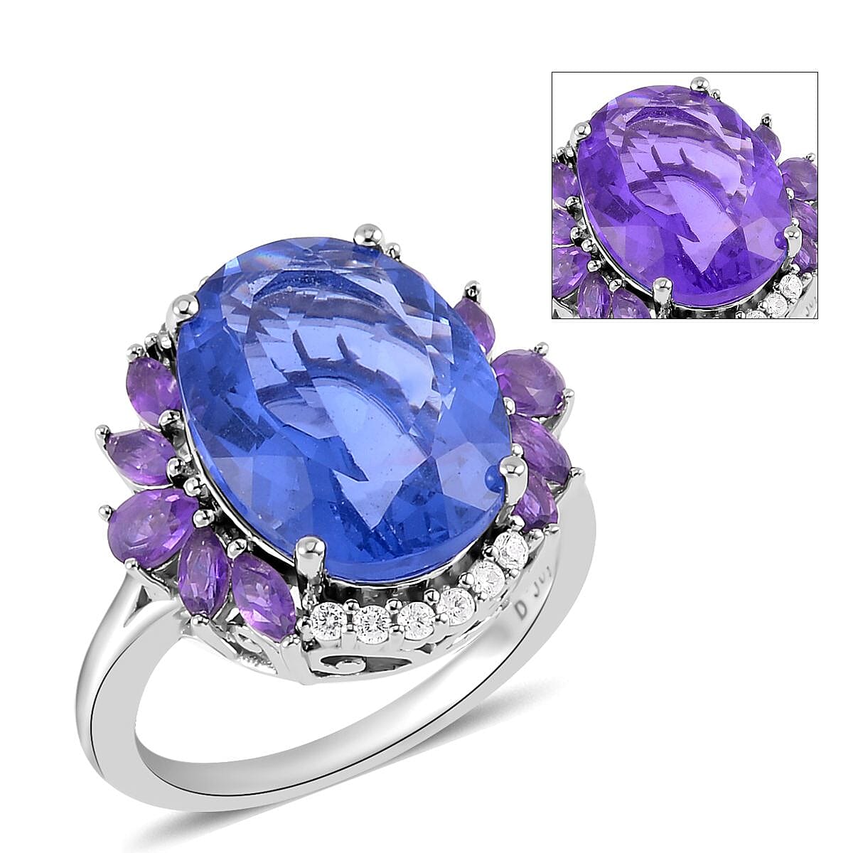 Color Change Fluorite (IR) and Multi Gemstone Floral Ring in Rhodium Over Sterling Silver (Size 7.0) 11.90 ctw