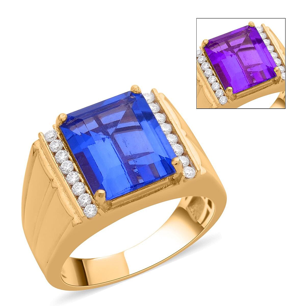 Color Change Fluorite (IR), Moissanite Men's Ring in Vermeil YG Over Sterling Silver (Size 10.0) (7.35 g) 7.40 ctw