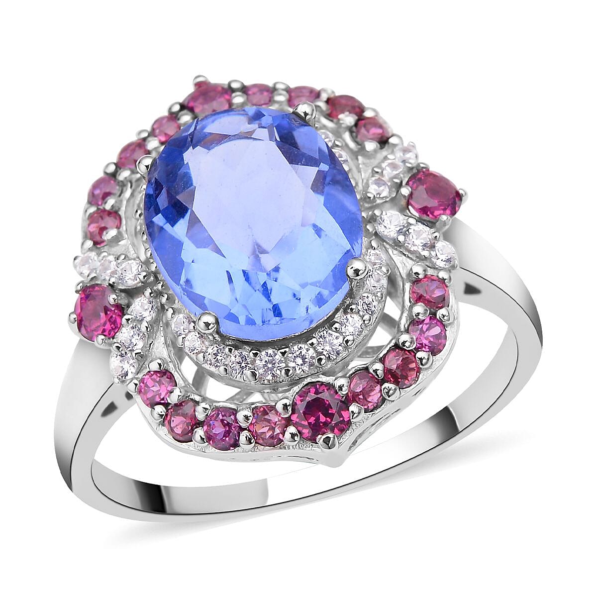 Color Change Fluorite, Multi Gemstone Cocktail Ring in Rhodium Over Sterling Silver (Size 10.0) 5.50 ctw
