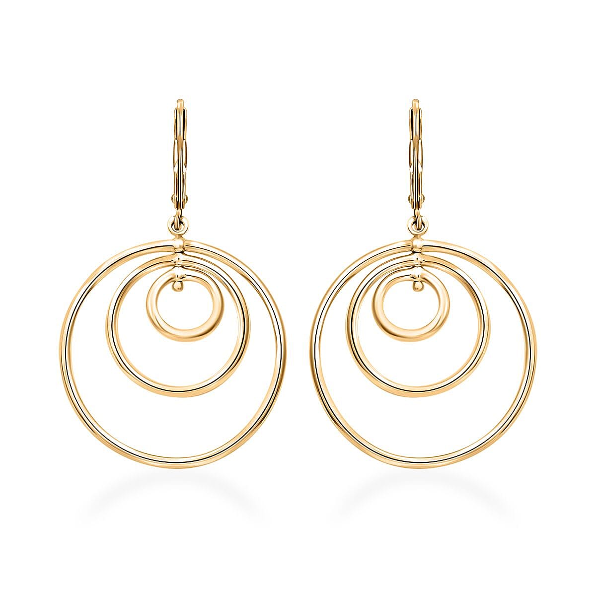 Infuse elegance into your everyday style with these stunning dangle gold earrings for women. Designed with three concentric circles in lustrous 10K yellow gold, these earrings exude sophistication and grace. Their lever backs ensure a secure and comfortable fit, making them perfect for any occasion. Whether as a gift or a treat for yourself, these earrings are a must-have addition to your jewelry collection, offering timeless beauty and a touch of glamour.