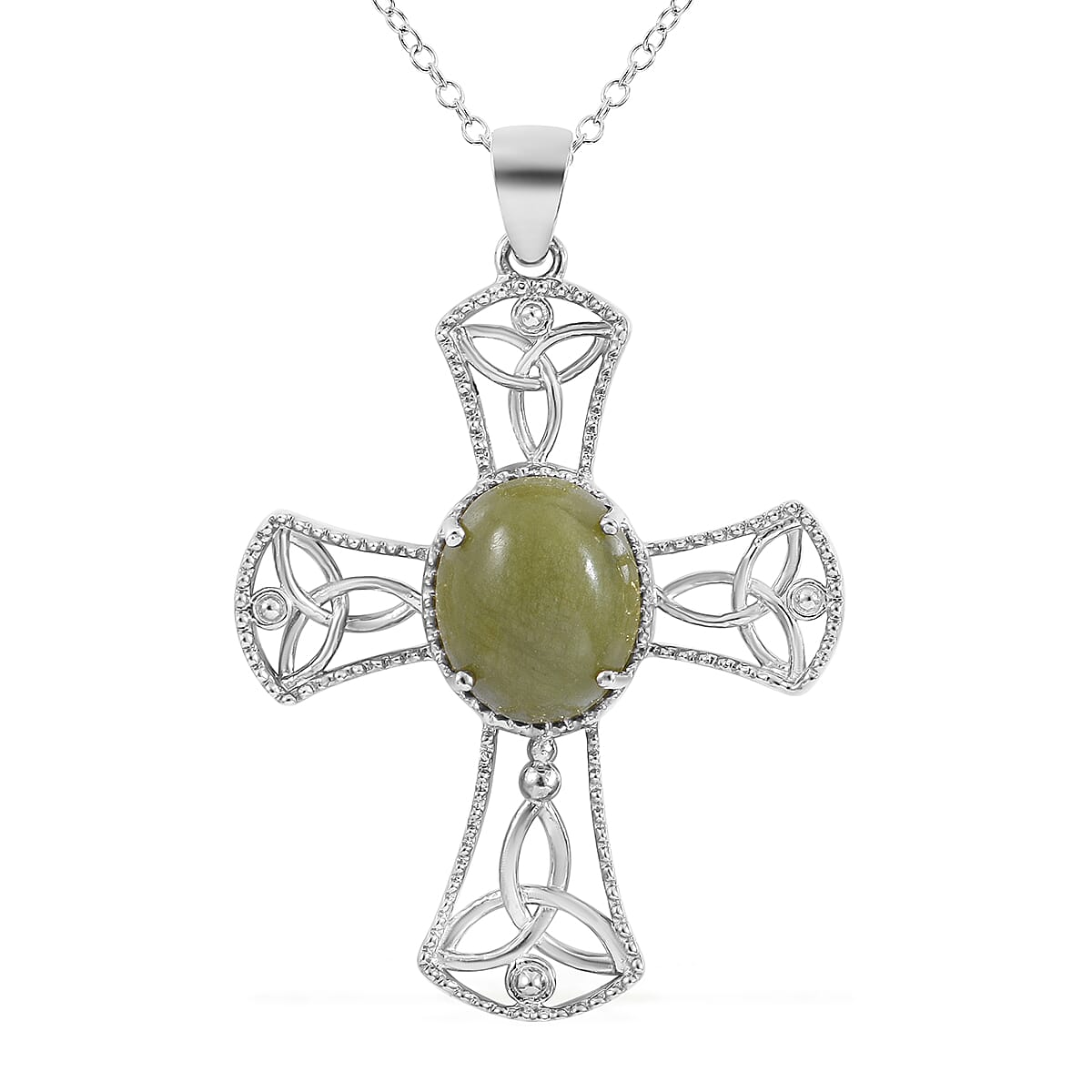 Connemara Marble Cross Pendant Necklace 18 Inches in Platinum Over Sterling Silver 6.50 ctw