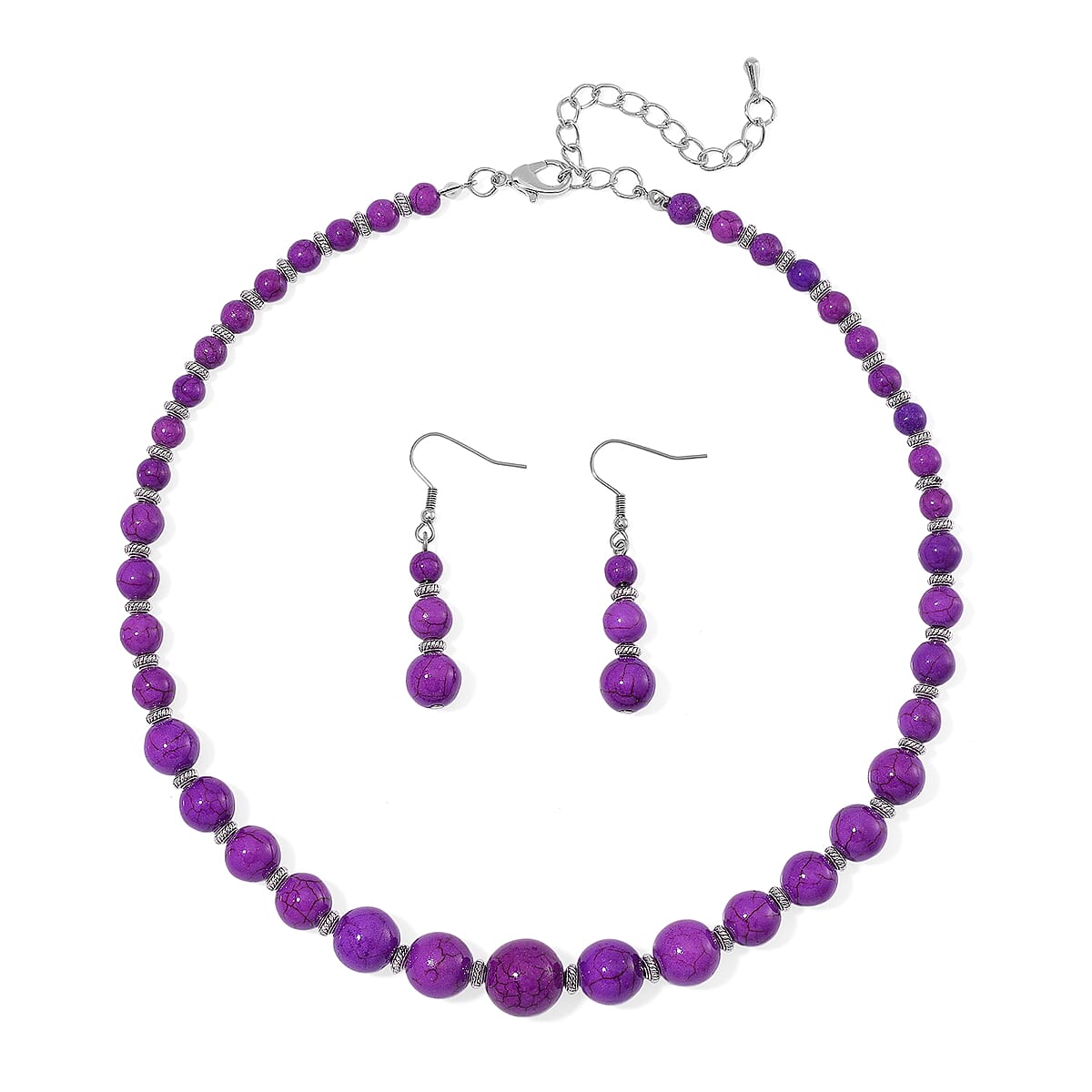 Constituted Purple Howlite 205.00 ctw Beaded Necklace 18-20 Inches and Earrings in Stainless Steel