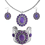 Constituted Purple Howlite 219.00 ctw Dangle Earrings, Cuff Bracelet (7.5-8.5In) and Pendant Necklace 26-30 Inches in Silvertone