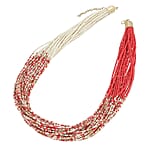 Coral and Ivory Knotted Glass Seed Beaded Necklace in Goldtone 17-19 Inches