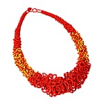 Coral and Yellow Seed Beaded Multi Strand Necklace 26 Inches