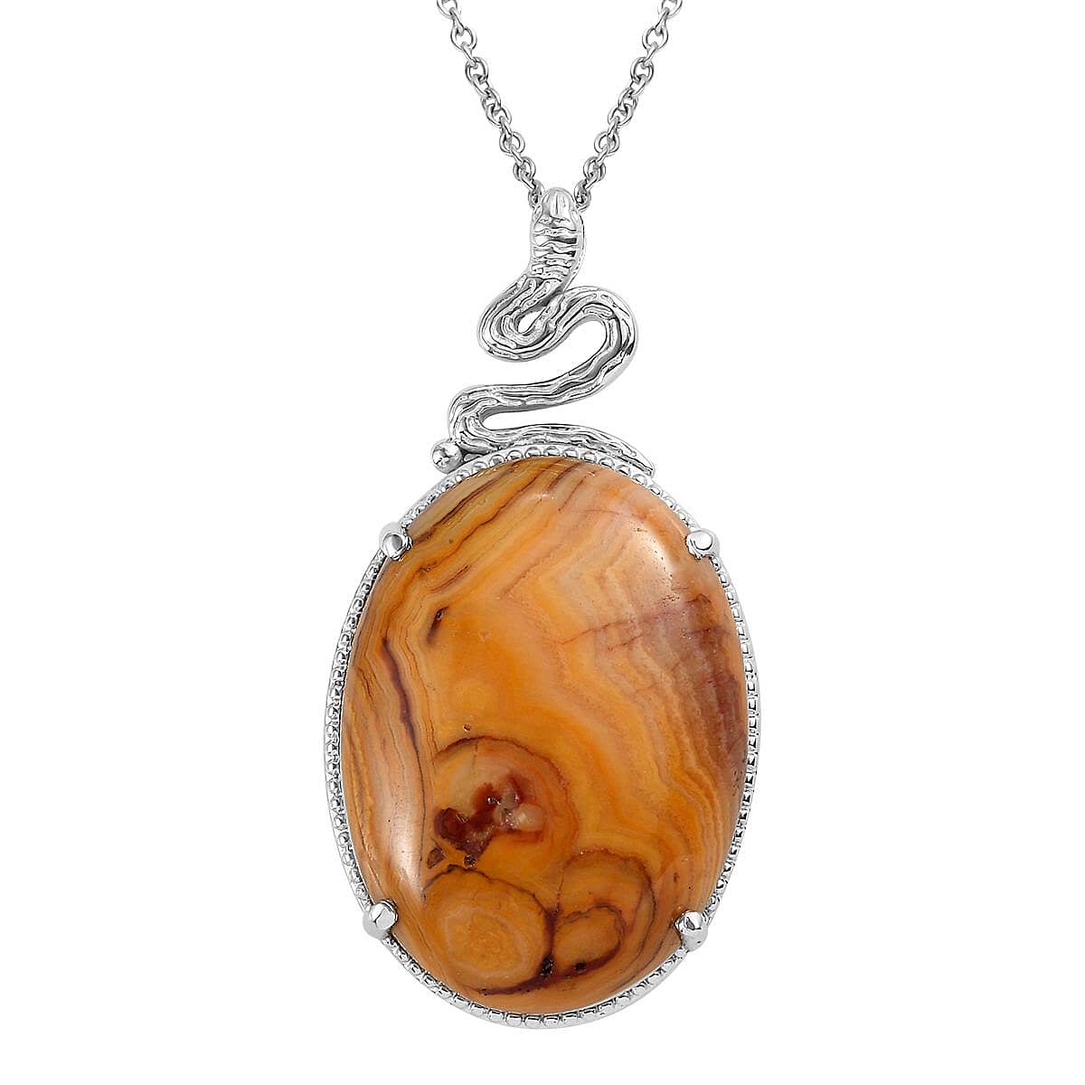 Crazy Lace Agate 38.50 ctw Solitaire Pendant Necklace 20 Inches in Stainless Steel