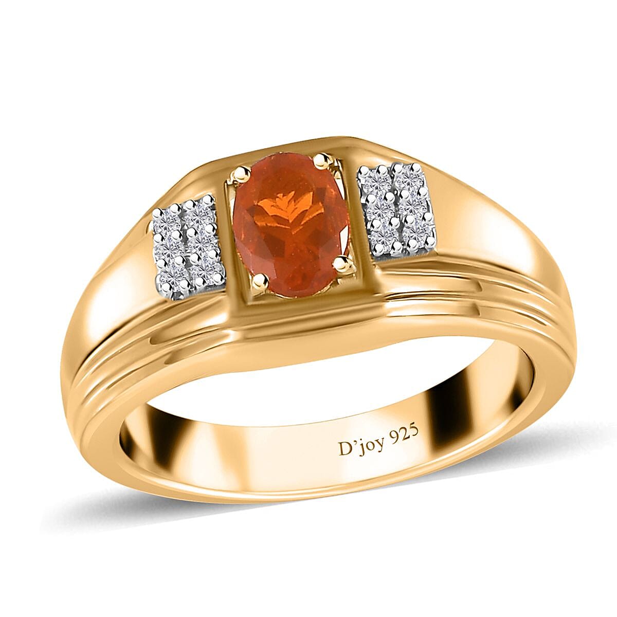 Crimson Fire Opal and White Zircon Men's Ring in Vermeil Yellow Gold Over Sterling Silver 0.65 ctw