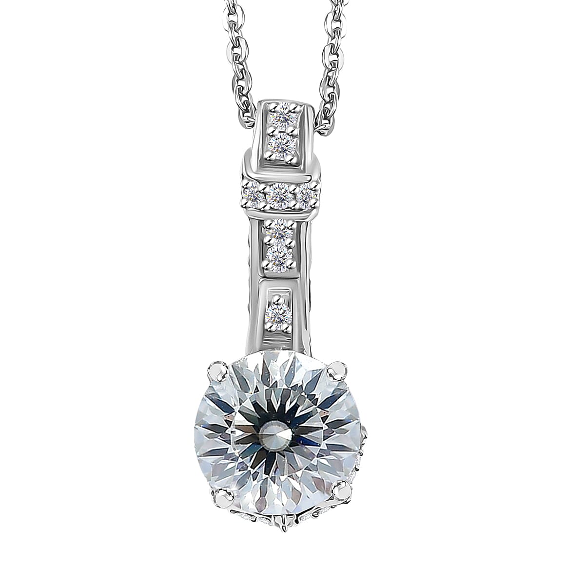 Crisantemo Cut Moissanite 1.60 ctw Vine Grace Pendant Necklace in Rhodium Over Sterling Silver 20 Inches
