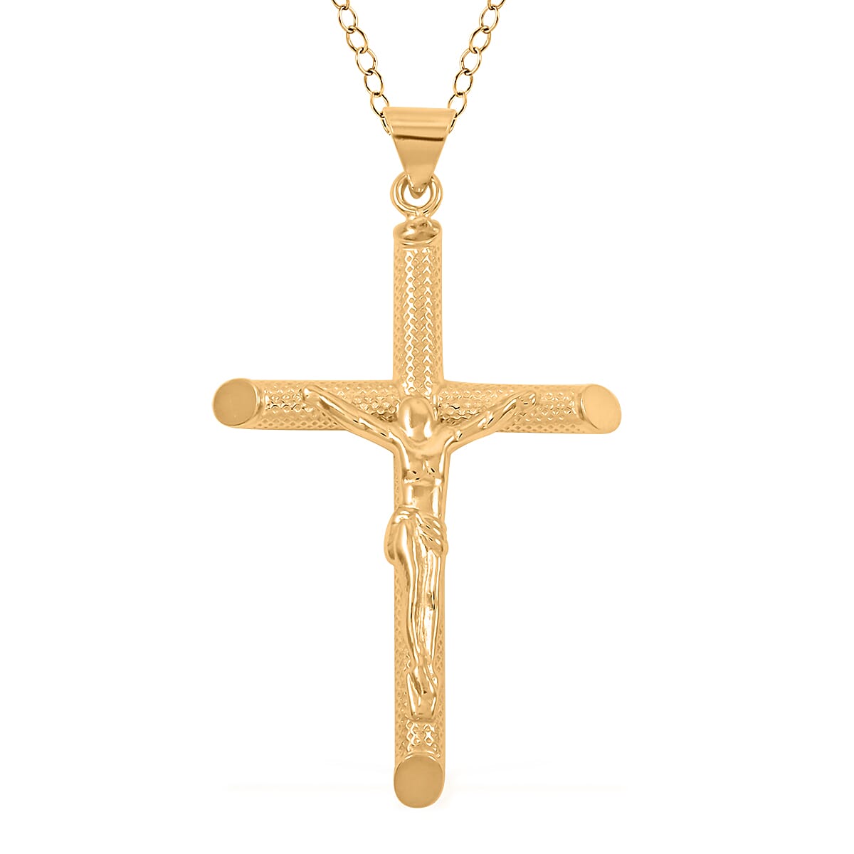 Cross Pendant Necklace in 14K Yellow Gold Over Sterling Silver 18 Inches 2.90 Grams