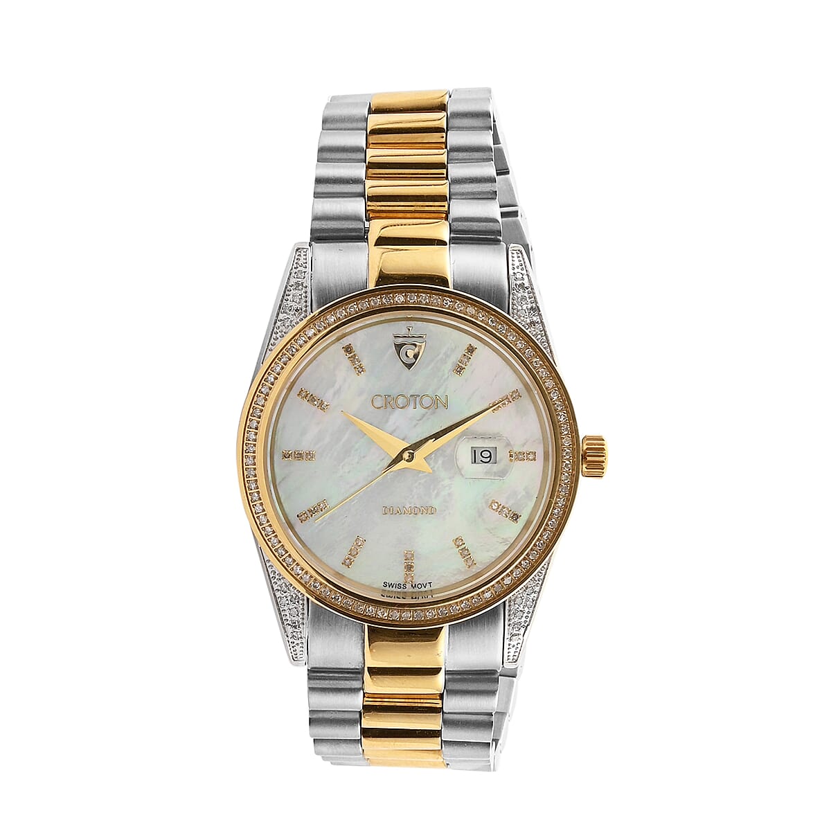 CROTON Diamond Swiss Movement Watch in ION Plated YG and Stainless Steel with MOP Dial (42mm) 1.00 ctw