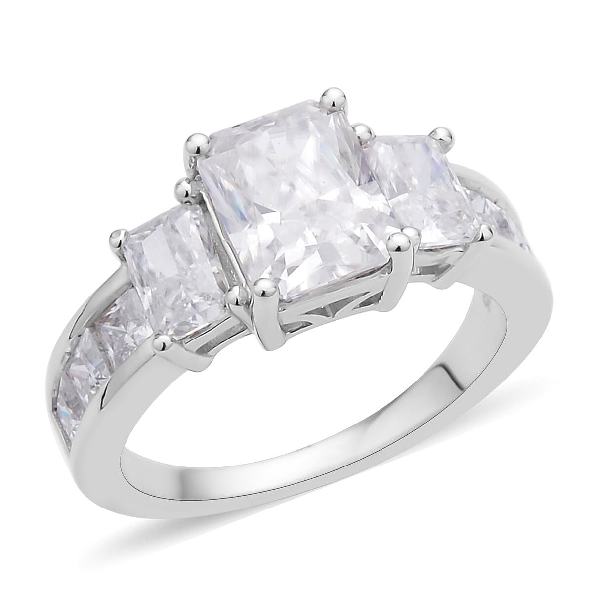 Crushed Ice Cut Moissanite Ring in Rhodium Over Sterling Silver (Size 10.0) 4.75 ctw