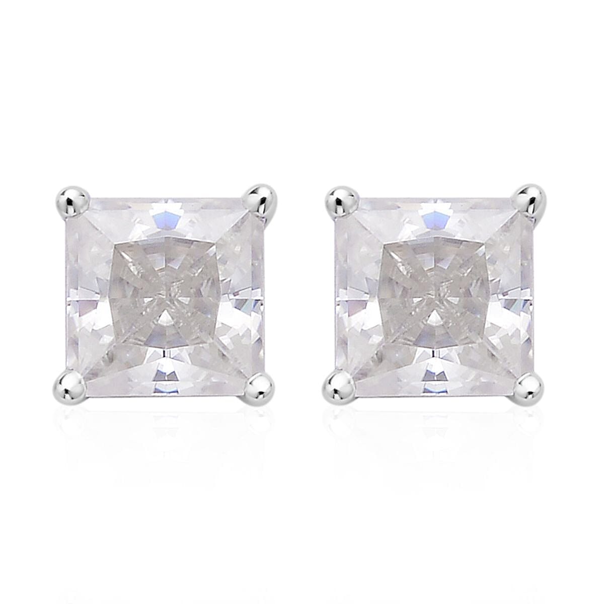Crushed Ice Cut Moissanite Solitaire Stud Earrings in Rhodium Over Sterling Silver 3.00 ctw