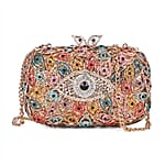 Crystellia Designer Premium Austrian Crystal, Multi Evileye Crystal Clutch with Golden Faux Leather Lining, Short Snake Chain