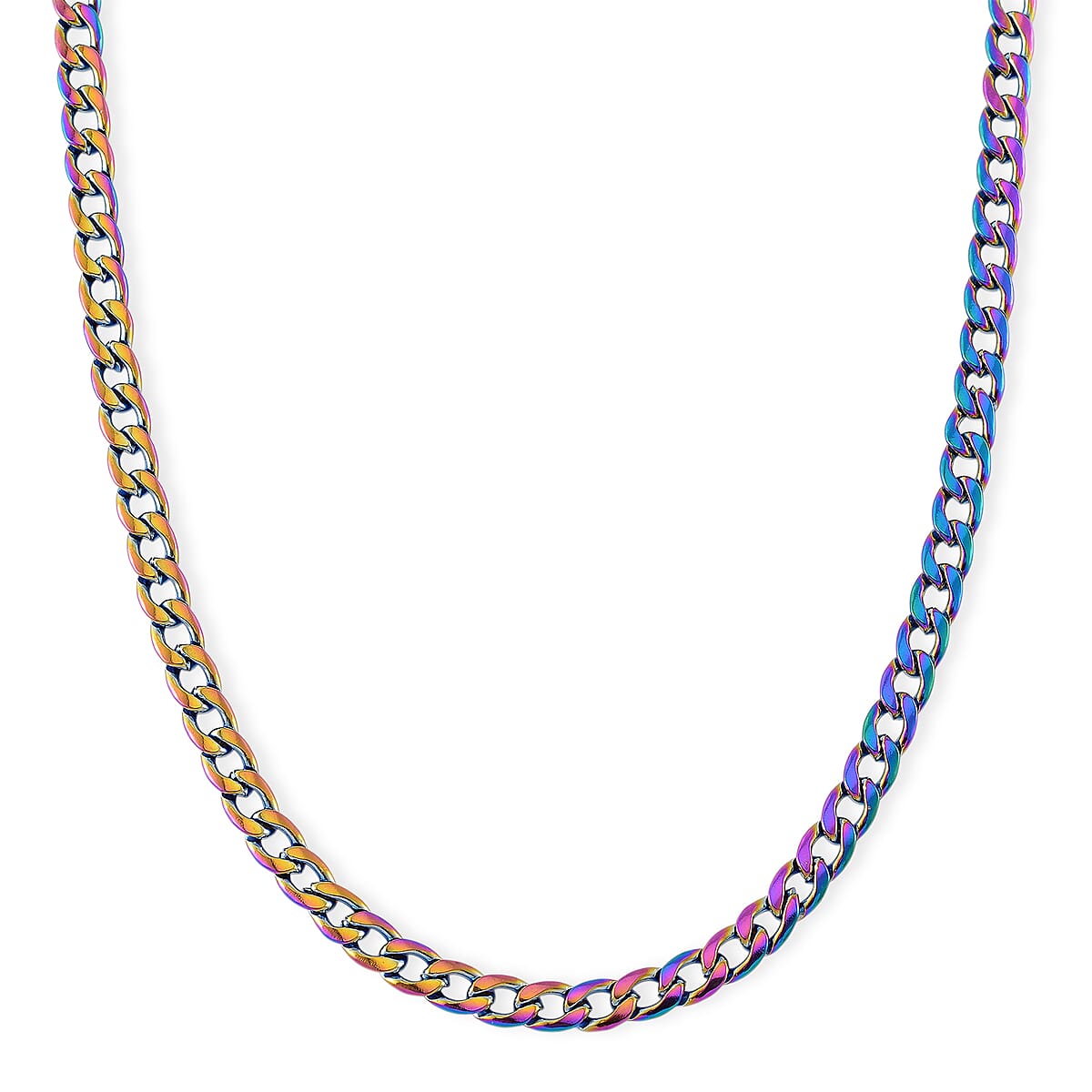 Cuban Chain Necklace in ION Plated Rainbow Stainless Steel 22-24 Inches