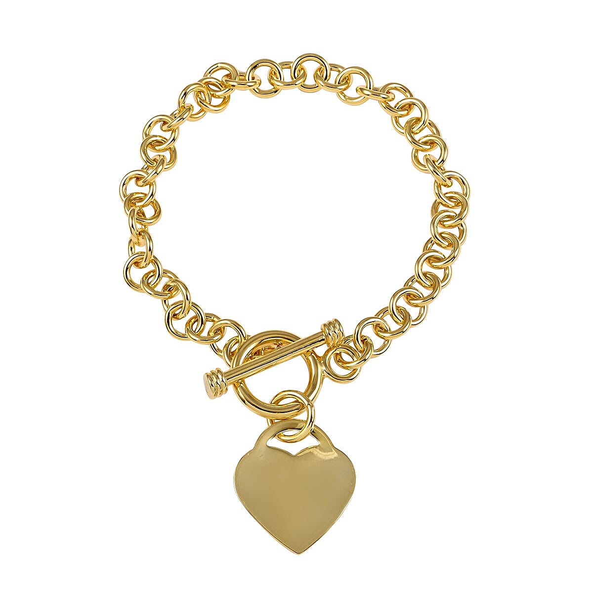 Curb Chain Toggle Lock Bracelet with Heart Charm in Goldtone (7.50 In)