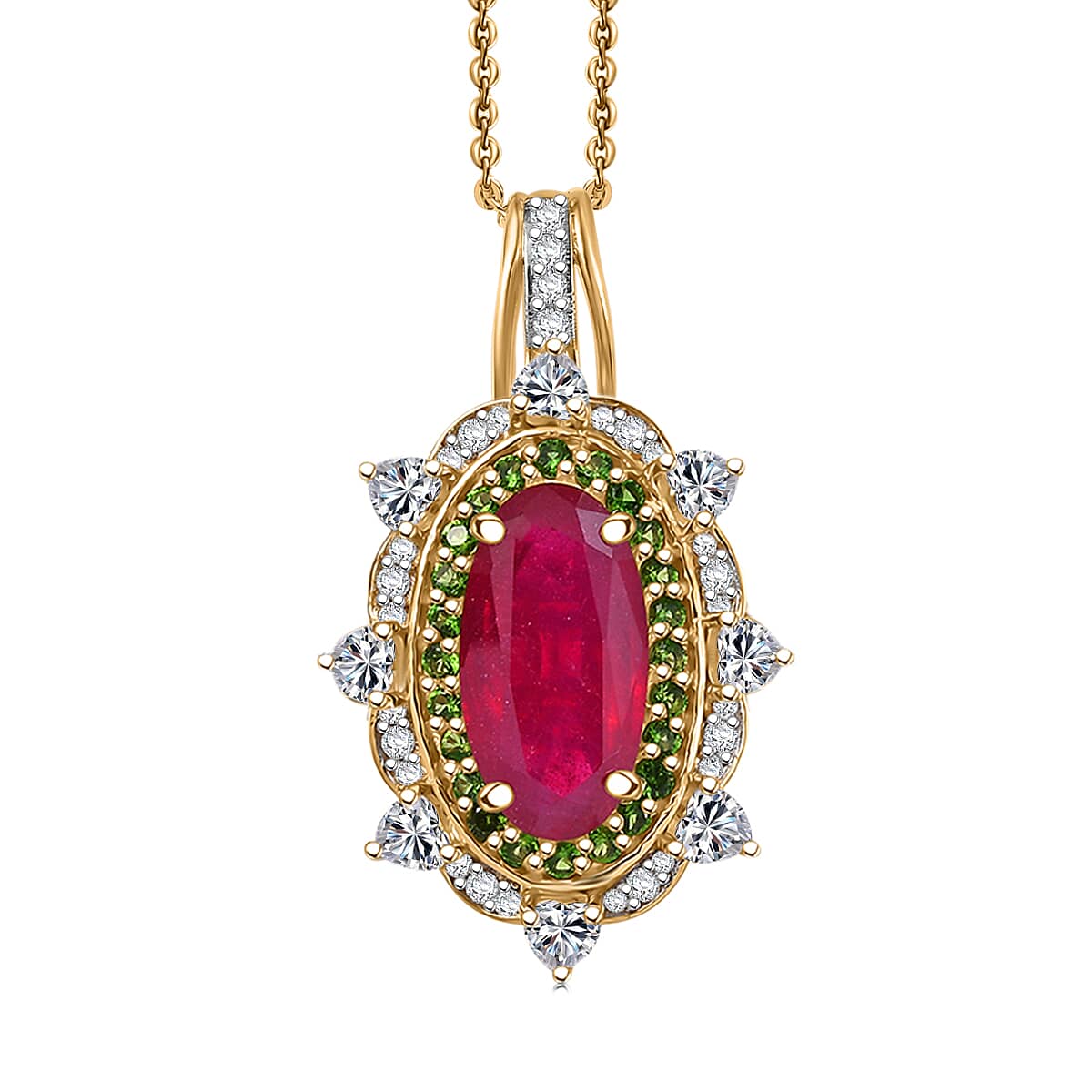 D' Joy Niassa Ruby, Multi Gemstone Heart Pendant Necklace in 18K Vermeil YG Over Sterling Silver 6.50 ctw (20 Inches)