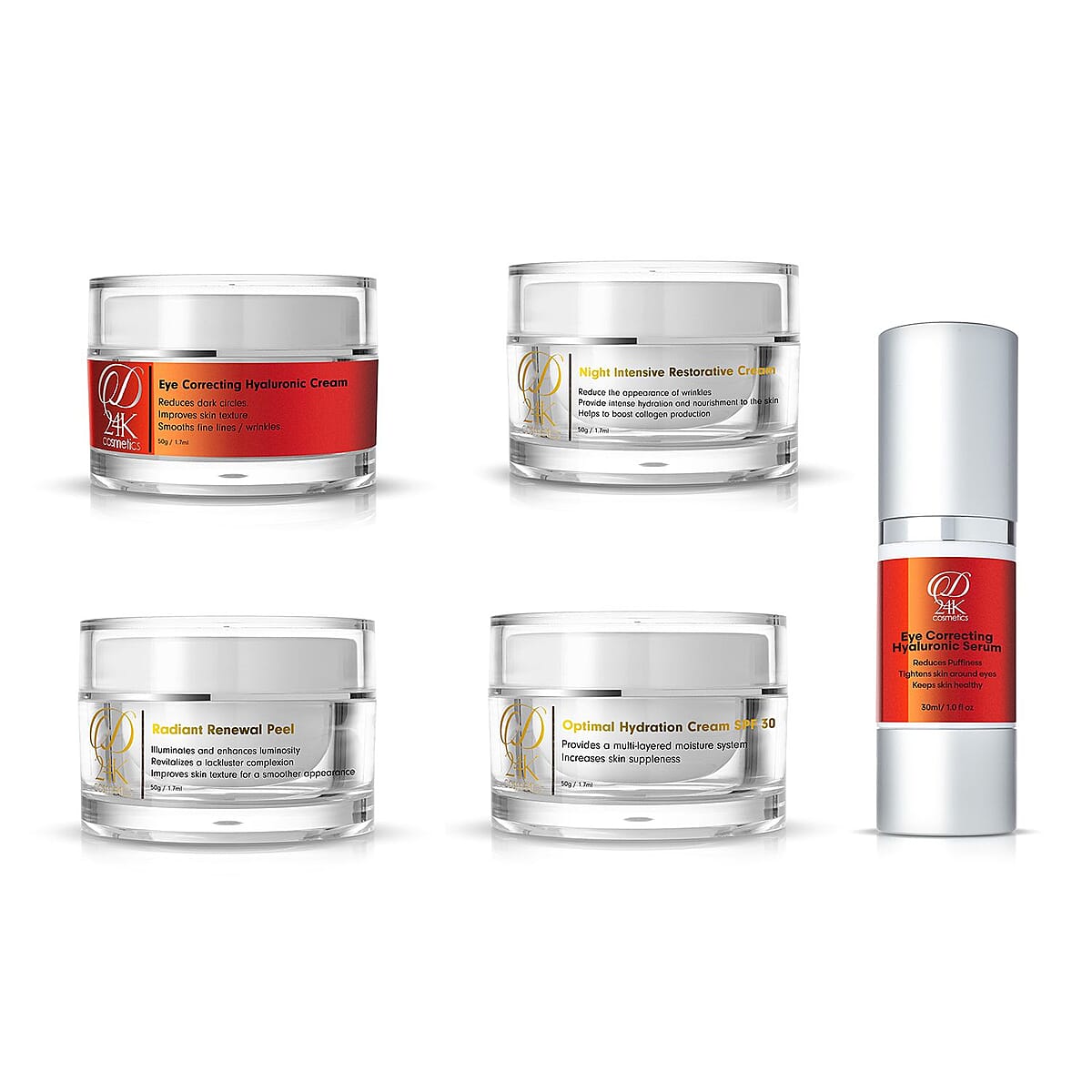 • EYE CORRECTING SERUM: This 1 fl oz Eye Correcting Hyaluronic Serum, rich in hyaluronic acid and 24K gold, instantly hydrates and firms the delicate skin around your eyes, part of the hyaluronic acid eye treatment kit