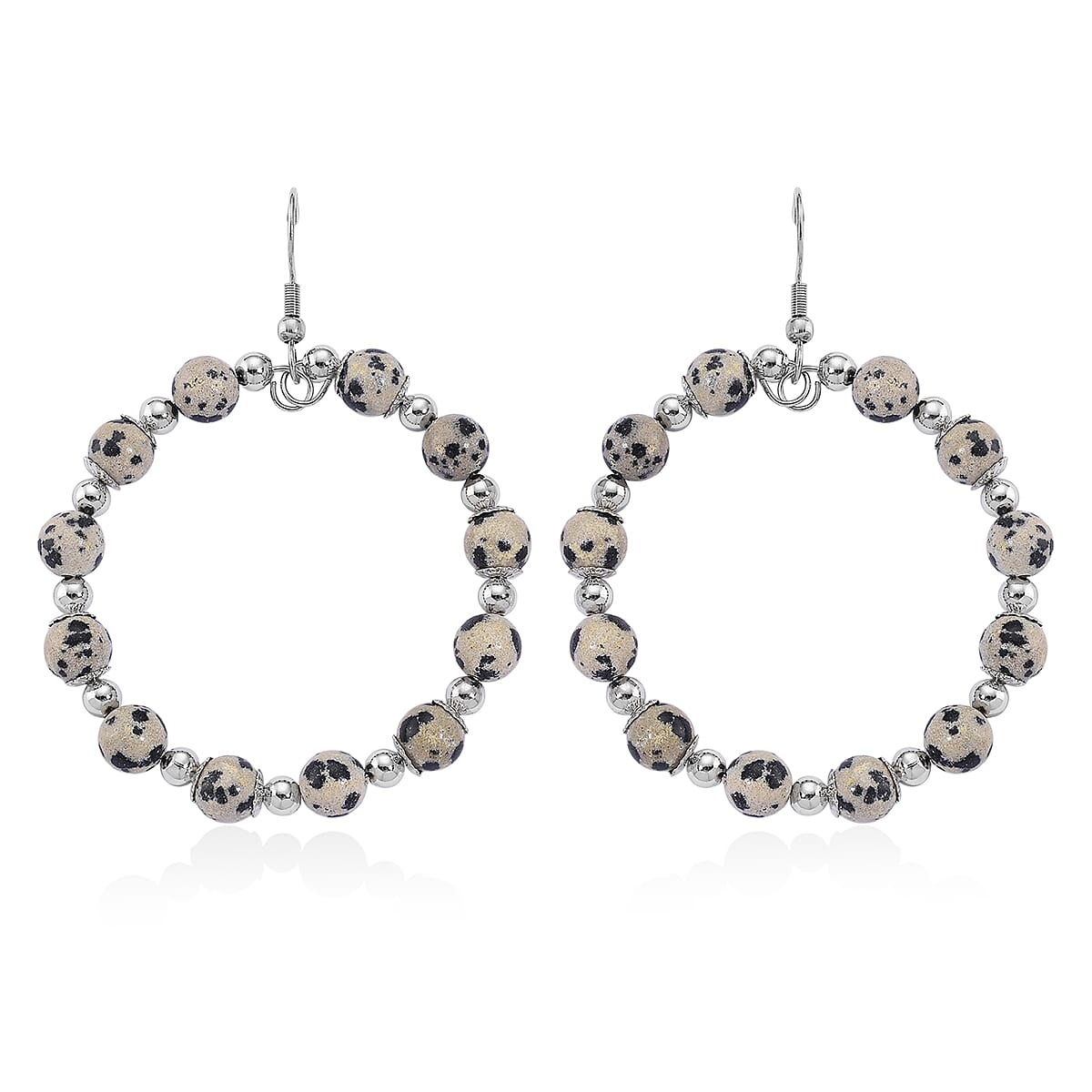 Dalmation Jasper 20.00 ctw Beaded Earrings in Silvertone and Stainless Steel
