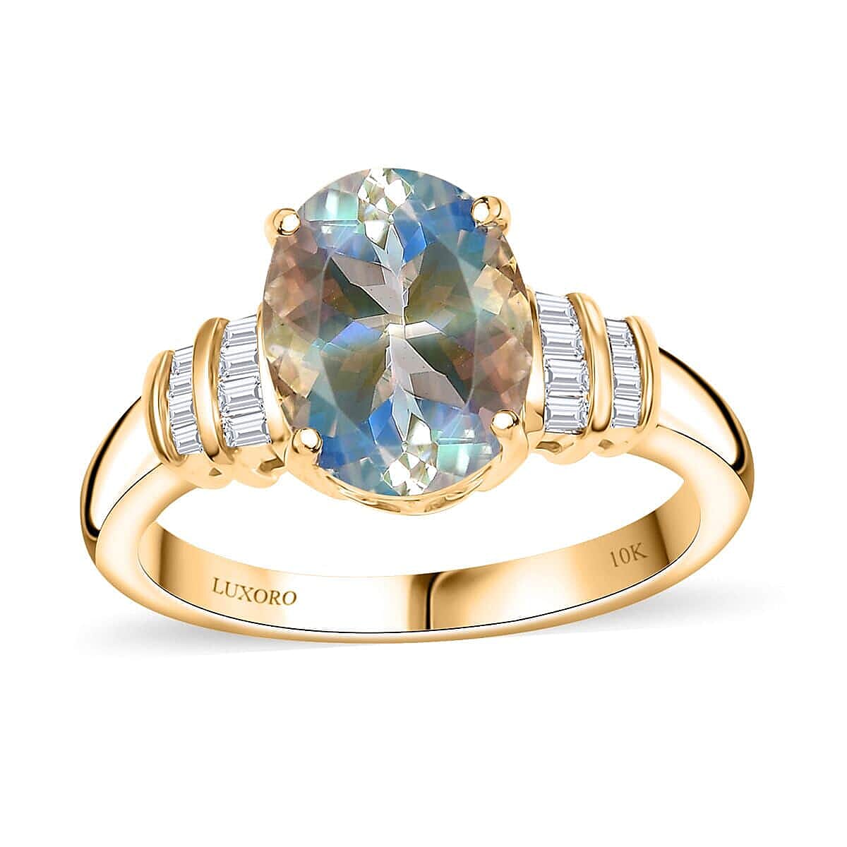 Elevate your style with this Luxoro AAA Malagasy moonstone ring in 10k yellow gold. The shimmering moonstone is beautifully complemented by sparkling diamonds, making this women's ring an actual standout piece for any occasion.
