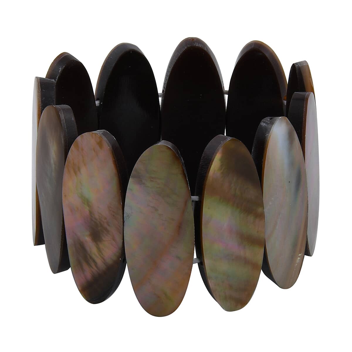 Dark Golden Shell Inlay Stretch Bracelet with Matching Color Resin (7.50 in) 0.10 ctw