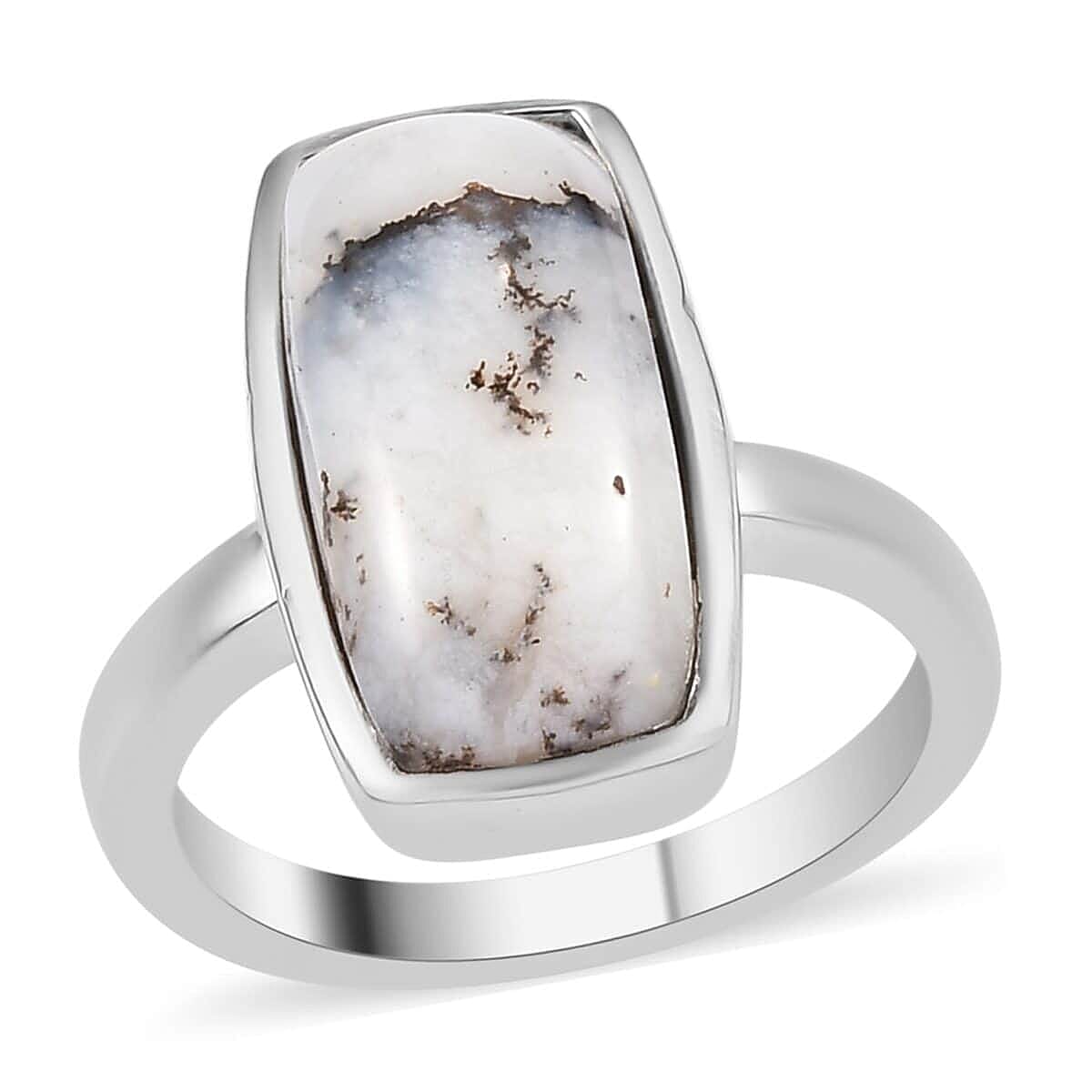 Dendritic Agate Solitaire Ring in Stainless Steel (Size 6.0) 5.10 ctw