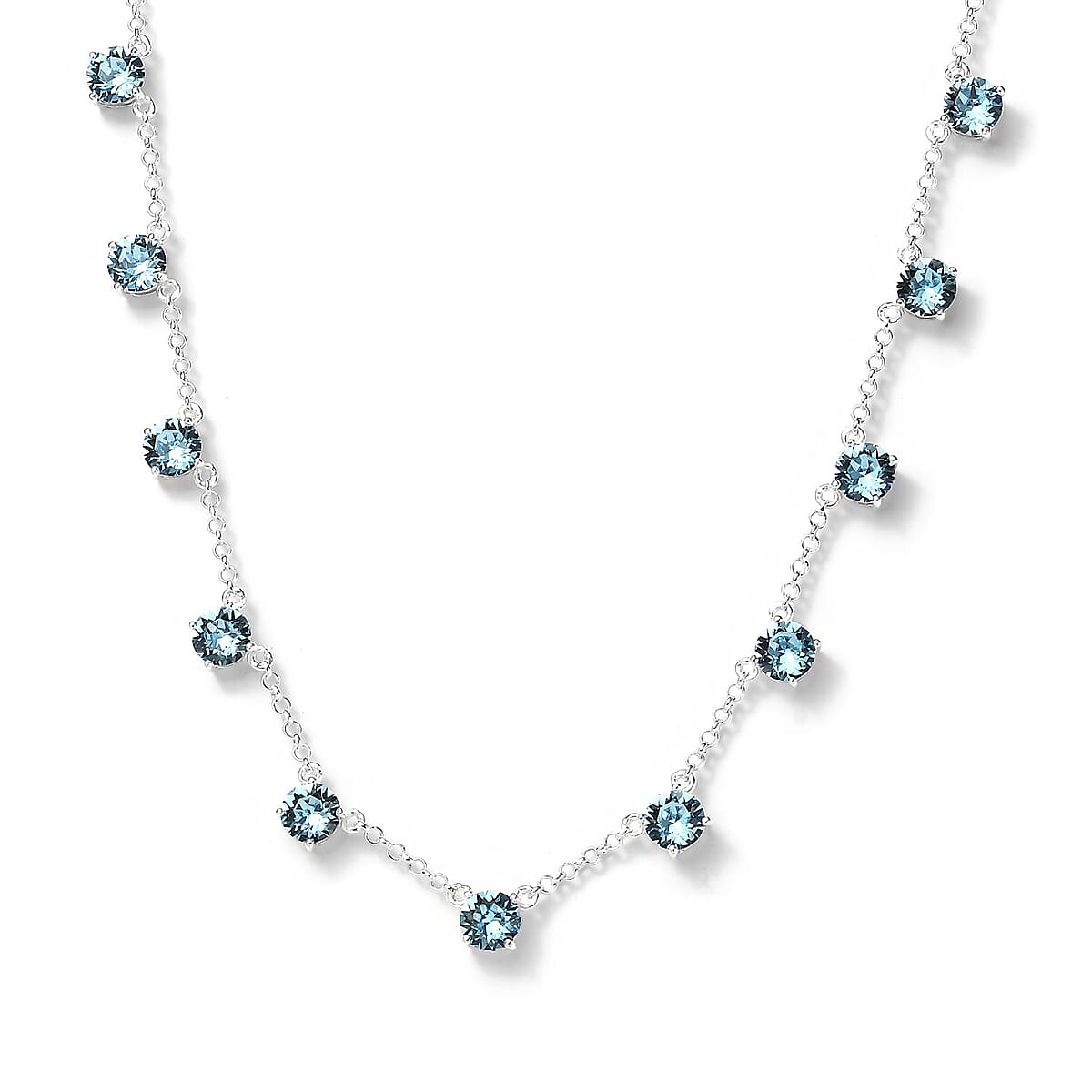 Designer Premium Aquamarine Color Austrian Crystal Station Necklace 18 Inches in Sterling Silver