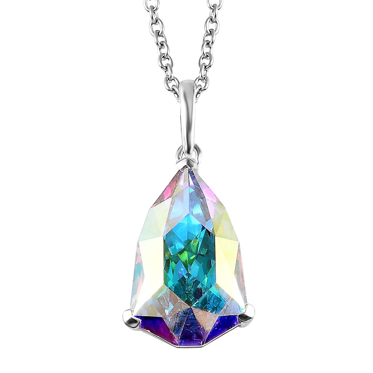 Designer Premium Aurora Borealis Austrian Crystal Pendant in Sterling Silver with Stainless Steel Necklace 20 Inches