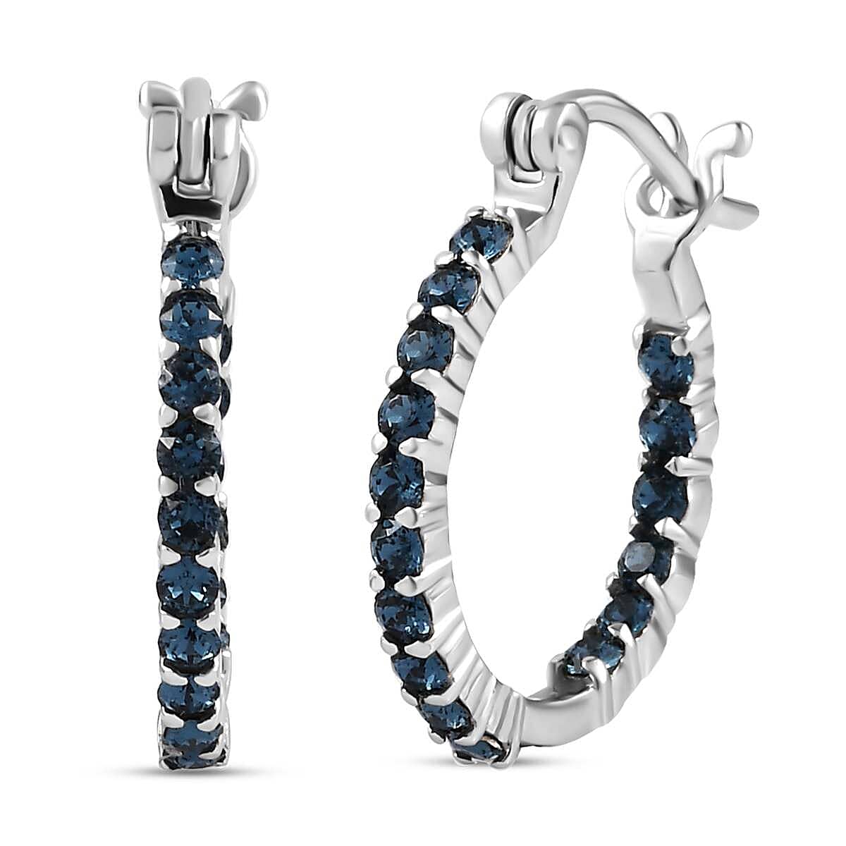 Designer Premium Montana Color Austrian Crystal Inside Out Hoop Earrings in Stainless Steel