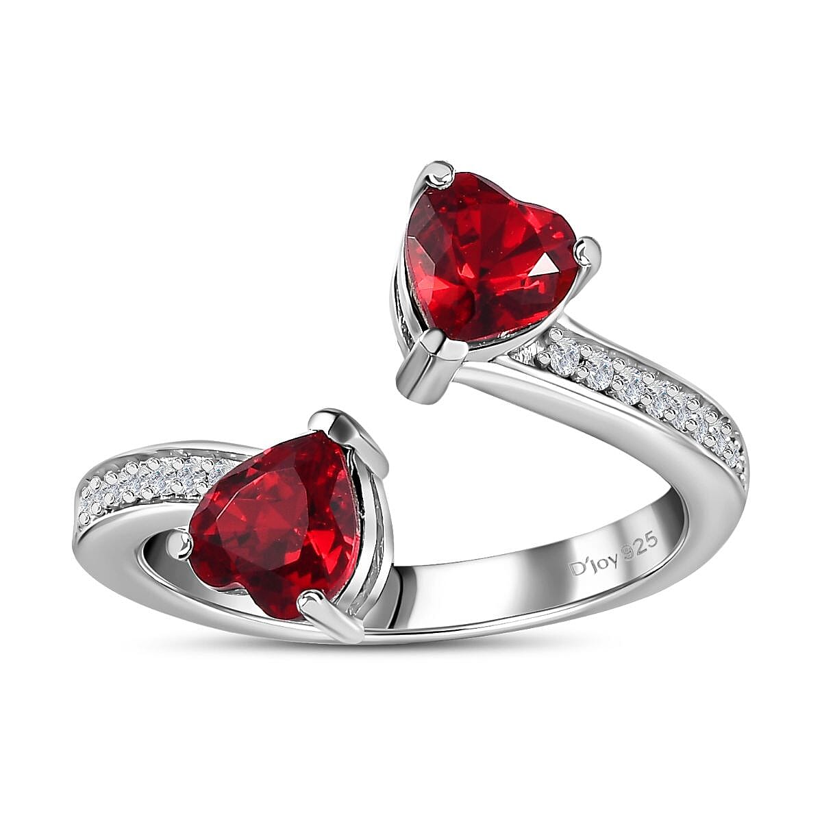 Designer Premium Siam Color Austrian Crystal and Simulated Diamond Heart Bypass Ring in Platinum Over Sterling Silver (Size 5.0)