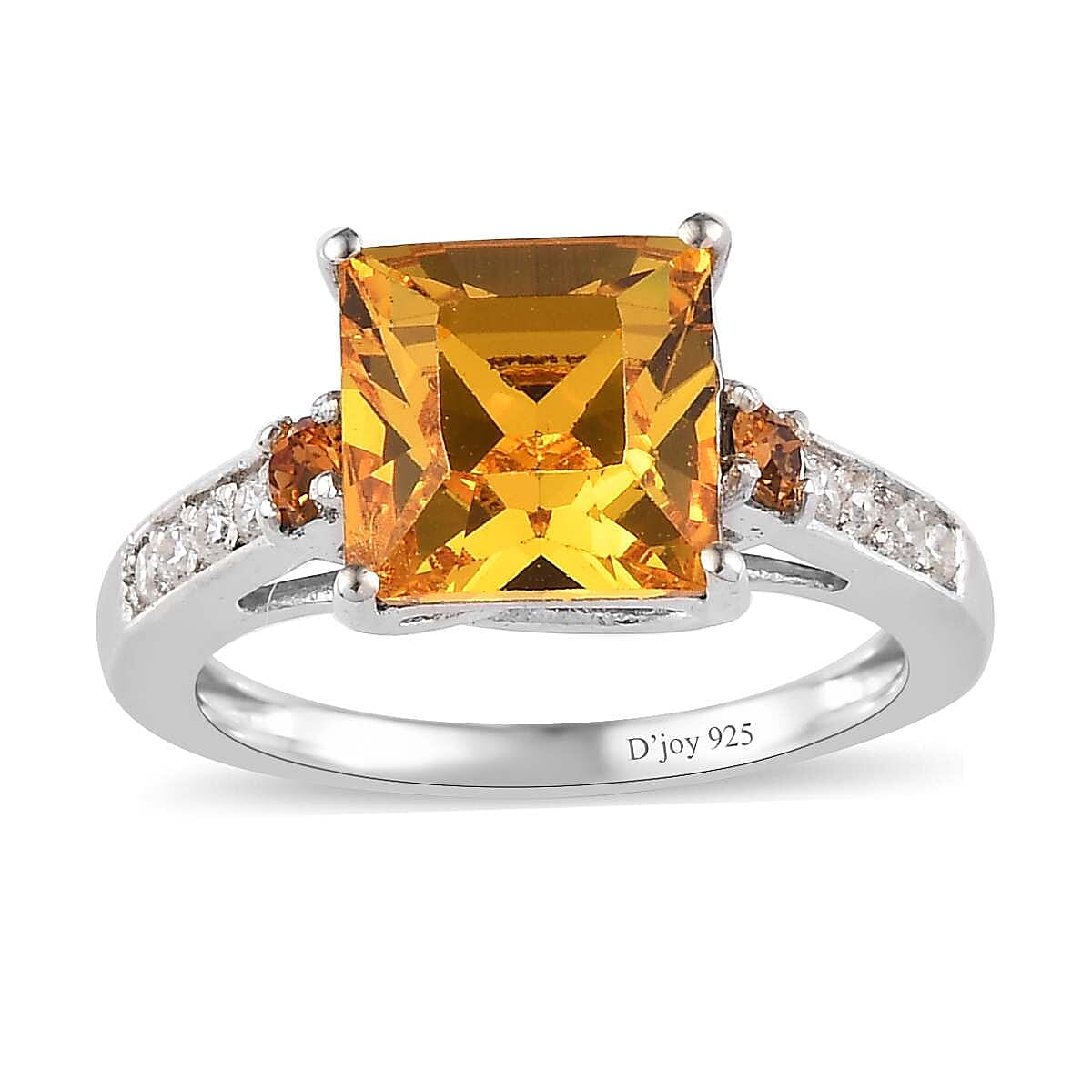 Designer Premium Sunflower and Topaz Color Austrian Crystal, Simulated Diamond Ring in Platinum Over Sterling Silver (Size 6.0)