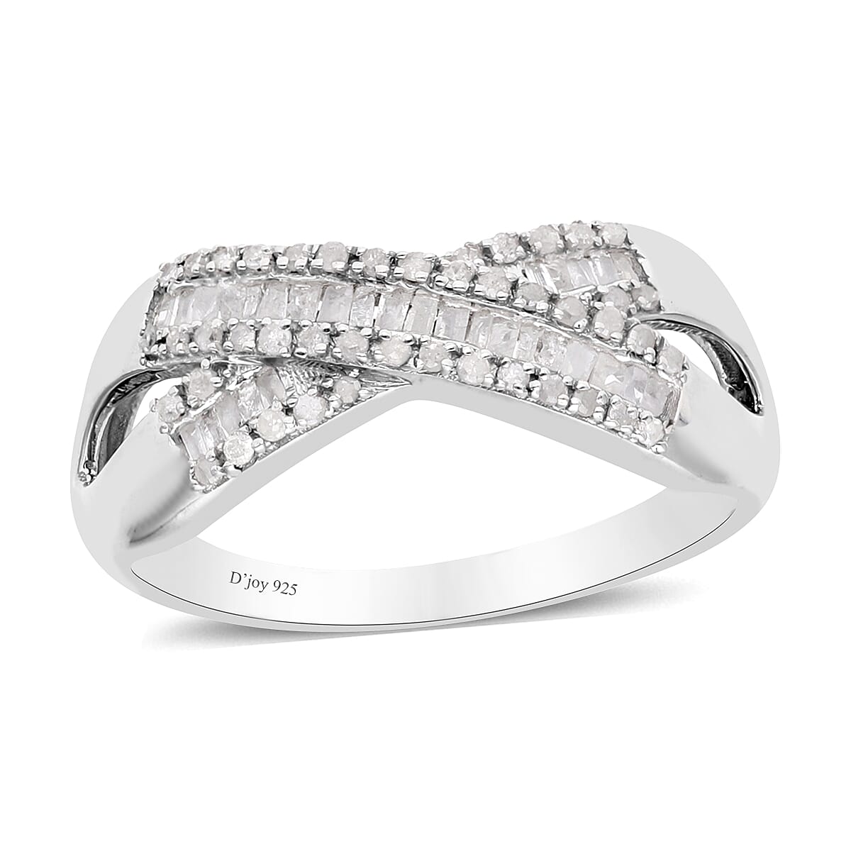 Experience love that knows no bounds with our infinity diamond ring. Sparkling rows of diamond rounds and baguettes intertwine in a dance of endless devotion, cradled in lustrous platinum over sterling silver. It's not just a ring; it's a romance reimagined.