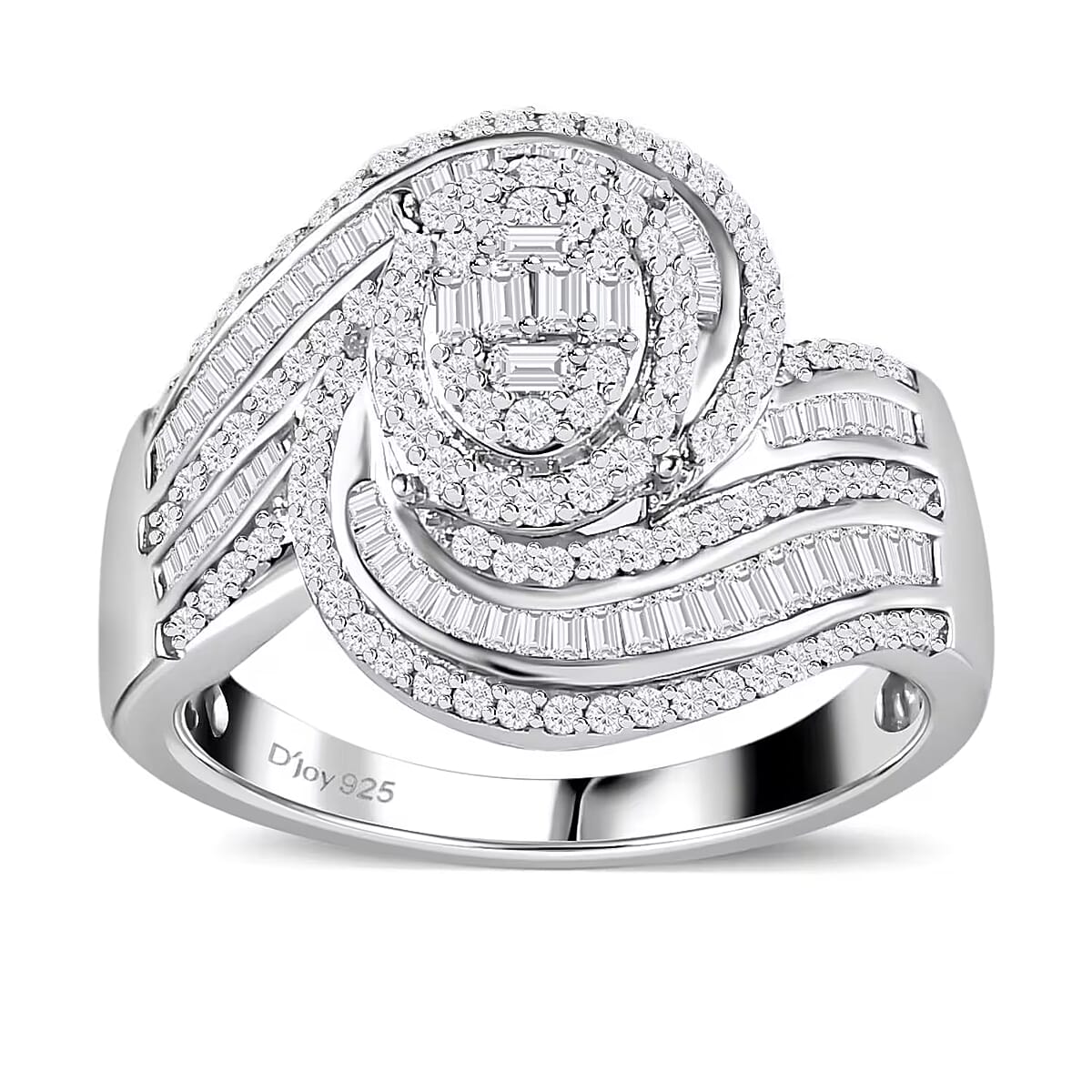 Diamond 1.00 ctw Bypass Ring in Platinum Over Sterling Silver (Size 9.0)
