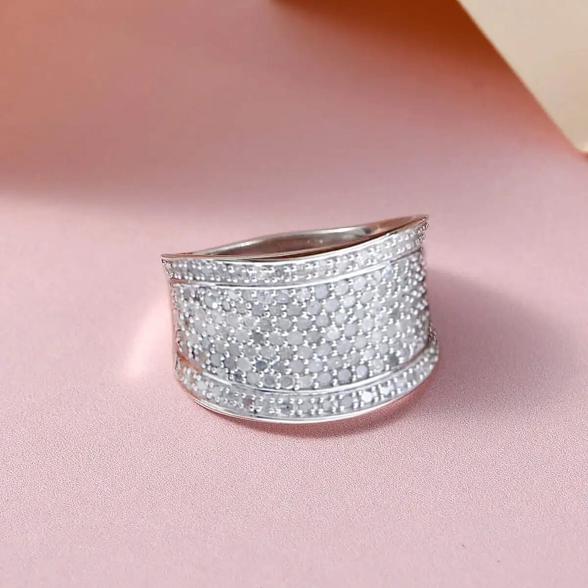 Diamond 1.00 ctw Ring, Diamond Cluster Ring, Platinum Over Sterling Silver Ring, Diamond Promise Ring (Size 7.0)