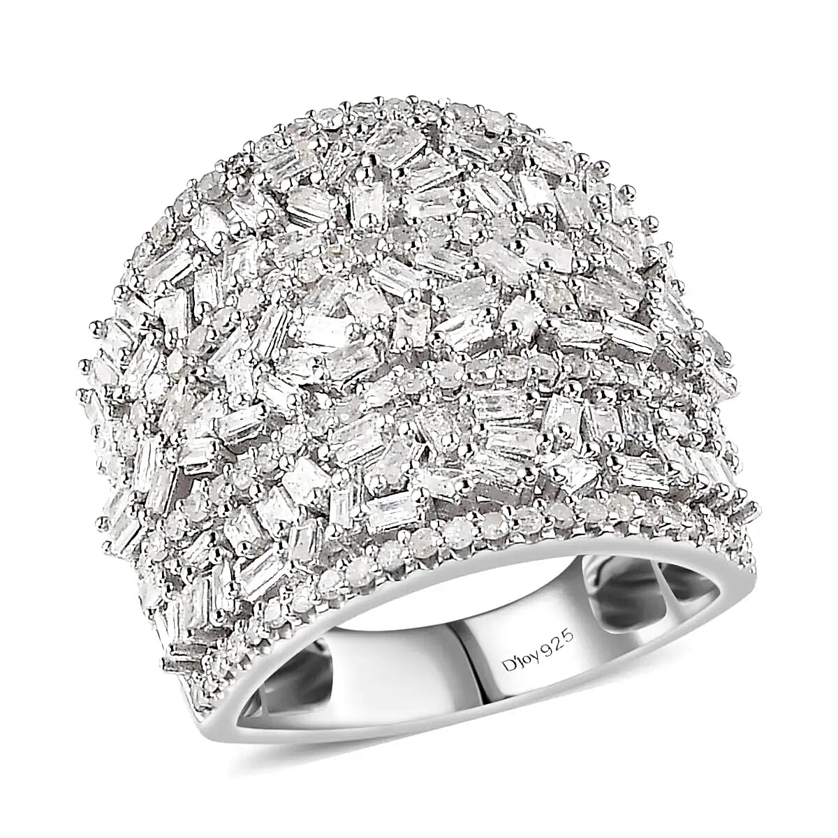 Diamond 2.00 ctw Cluster Ring, Platinum Over Sterling Silver Ring, Diamond Jewelry, Wide Diamond Wedding Bands (Size 10.00)