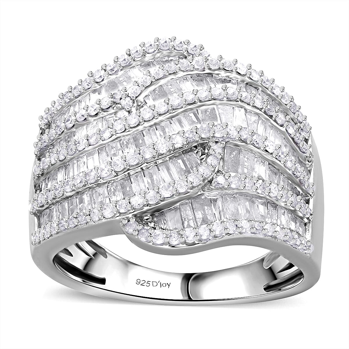 Diamond 2.00 ctw Waves Ring in Platinum Over Sterling Silver (Size 9.0)