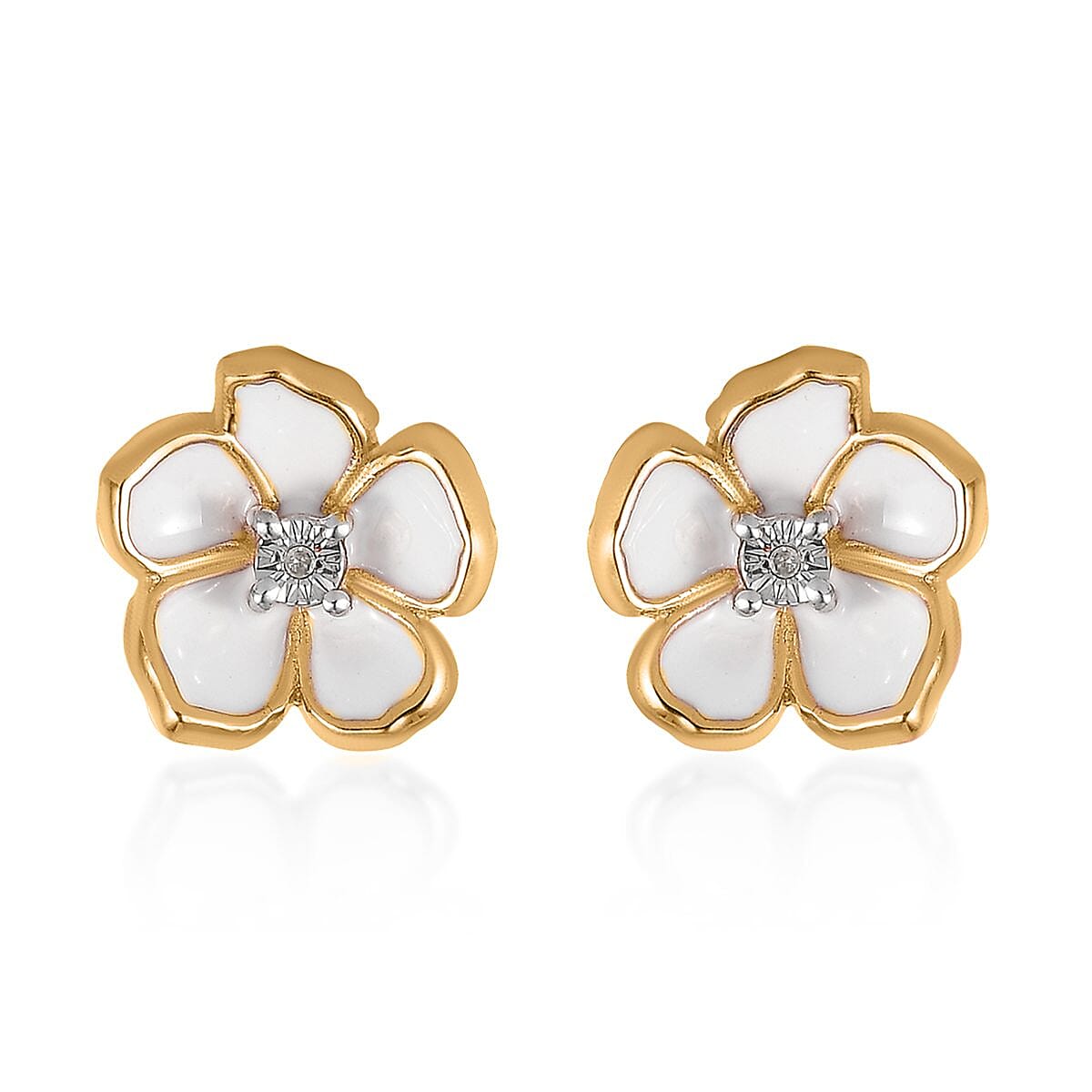 Diamond Accent and Enameled Floral Earrings in 14K Yellow Gold Over Sterling Silver