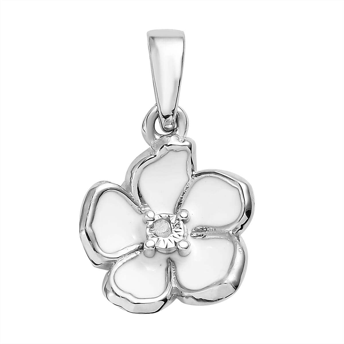Indulge in the splendor of nature and luxury with our diamond accent floral pendant. This sterling silver masterpiece, featuring a single dazzling diamond at its center, epitomizes the beauty of floral jewelry. The meticulously enameled petals radiate a life-like charm, inviting you to embrace the eternal trend of floral elegance. This pendant is the quintessential gift for the discerning woman, not just an accessory but a symbol of sophistication and timeless grace.