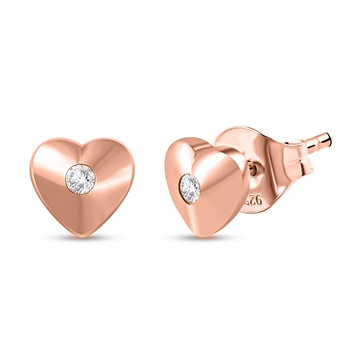 Diamond Accent Heart Stud Earrings in Vermeil Rose Gold Over Sterling Silver