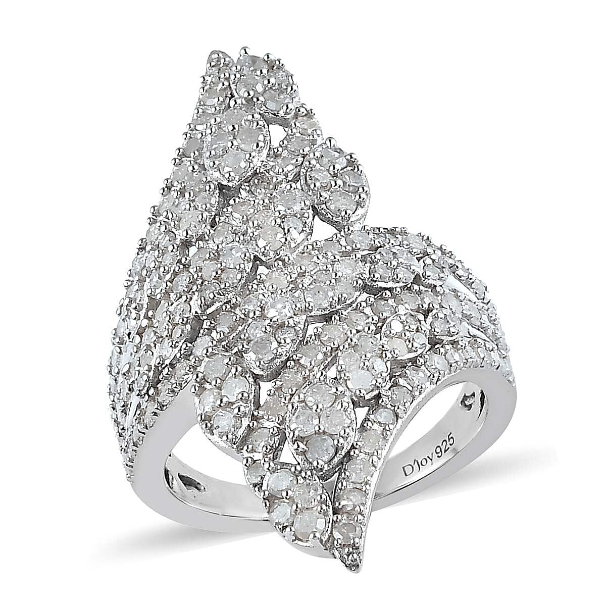 Diamond Bypass Ring in Platinum Over Sterling Silver, Promise Rings (Size 7.0) 1.50 ctw