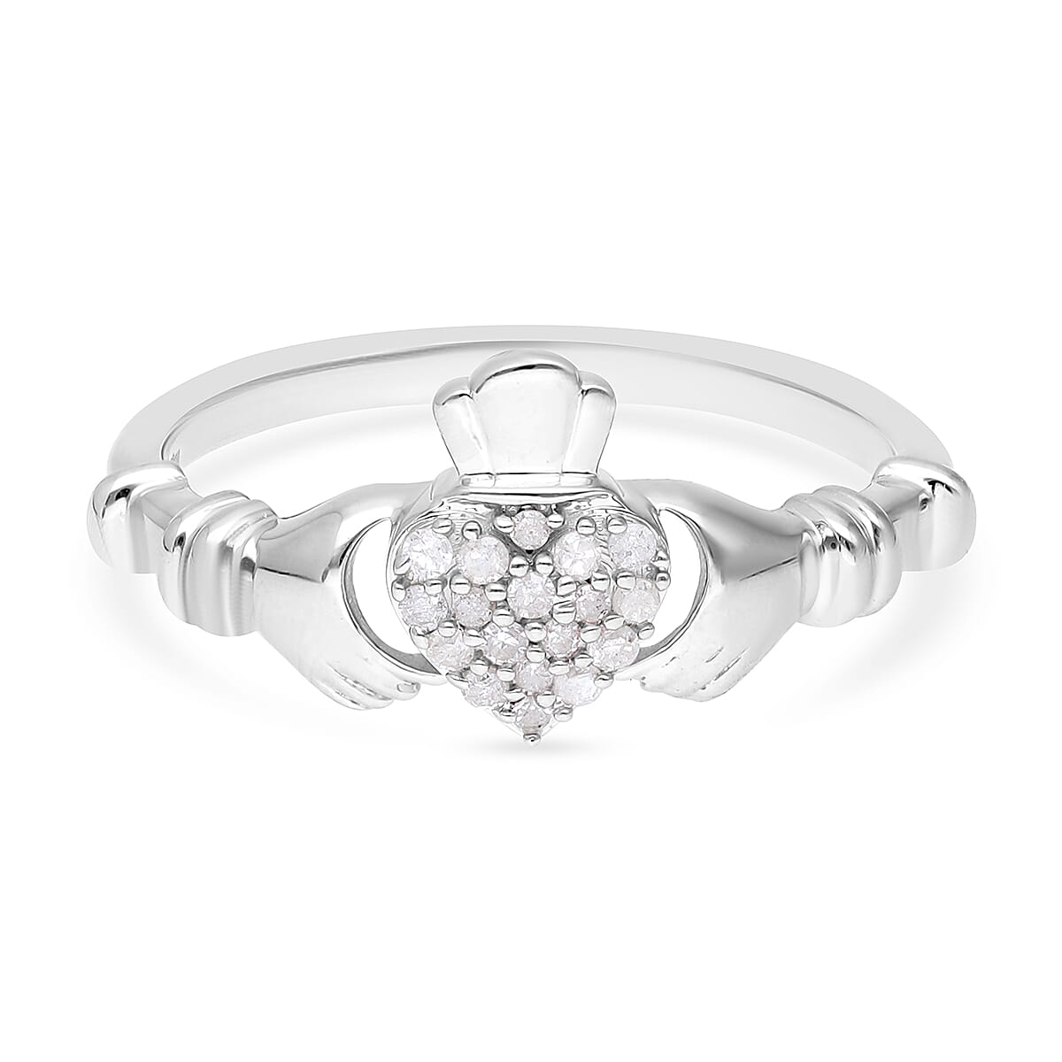 Diamond Claddagh Ring in Platinum Over Sterling Silver (Size 8.0) 0.15 ctw