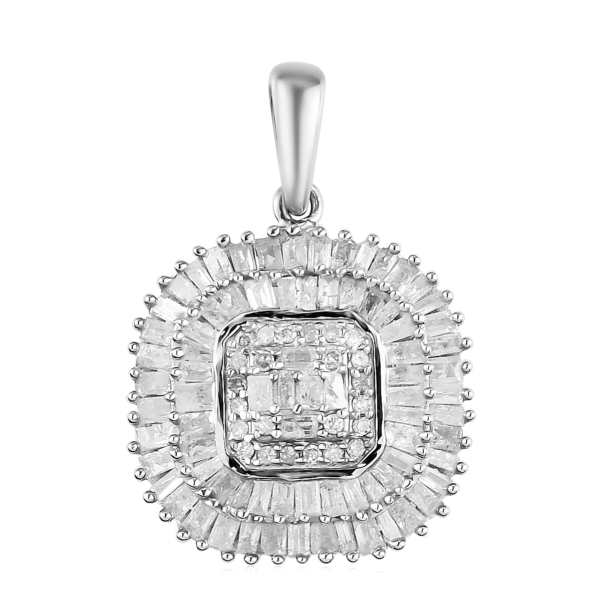 Diamond Cluster Pendant in Platinum Over Sterling Silver 2.35 Grams 1.50 ctw